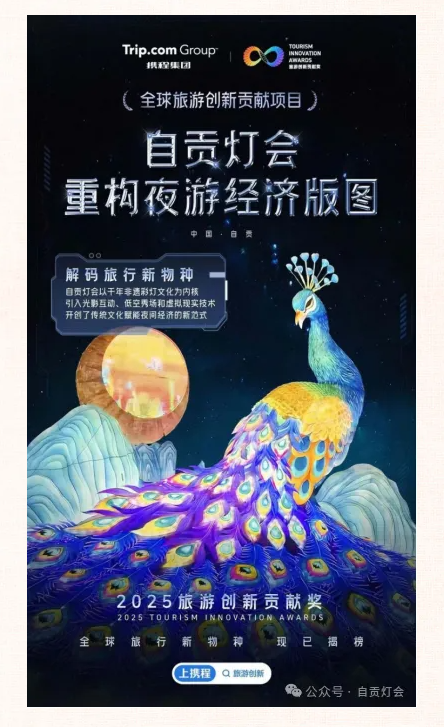 自貢燈會以千年非遺彩燈為核心,融入光影互動、低空秀場和虛擬現(xiàn)實等前沿科技,成功開創(chuàng)了傳統(tǒng)文化賦能夜間經(jīng)濟的新模式。憑借這一創(chuàng)新實踐,它從全球100個入圍項目中勝出,摘得“2025旅游創(chuàng)新貢獻獎”。這一榮譽不僅是對自貢燈會的高度肯定,更是對其創(chuàng)新突破的有力背書,為其塑造國際化品牌搭建了展示成果、交流經(jīng)驗的優(yōu)質(zhì)平臺。